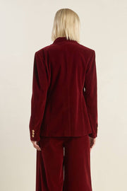 A velvet blazer with single button closure. Matching pant COY CHARM VELVET PANTS