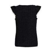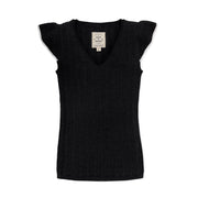 Our beautiful pointelle sweater top is made of super soft organic cotton with a touch of stretch that hugs you in all the right places. Features a flattering v neck, flutter sleeves with contrast tipping, and a snug fit throughout. This flattering sweater top looks great on its own or layered under your favorite cardigan!