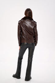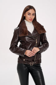 This stunning jacket showcases genuine lamb leather embossed with an elegant snakeskin pattern, providing a luxurious texture and unique style. It features a rich, genuine mink fur collar that adds a touch of warmth and sophistication. Complete with a sleek zipper closure and a belted waist, this piece exudes both elegance and edge, making it a perfect choice for refined fashion enthusiasts seeking a statement outerwear item.