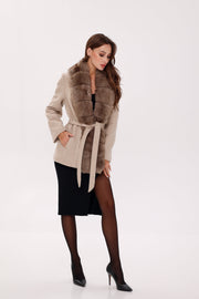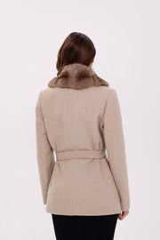 Genuine Polar Fox Fur Virgin Wool Coat in Nude