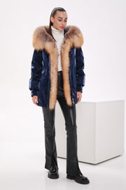 Experience ultimate winter elegance with this premium parka featuring glossy, water-repellent vinyl fabric and luxurious red fox fur trim. Designed for exceptional warmth and style, it’s insulated with high-quality down, offering reliable protection in subzero temperatures. The detachable fur accents and refined details make this coat a perfect fusion of functionality and sophistication.