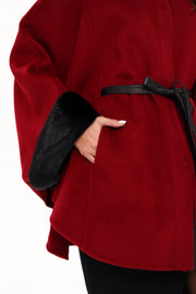 Crowned with a genuine Scandinavian fur trim collar, this pure wool poncho coat exudes sophistication and is accented by luxe leather belt. Premium quality double face virgin wool, once reserved for royalty, makes this coat solid addition to your wardrobe. And the Scandinavian Mink fur trim adds stunning contrast of texture and tone. Finished with a flattering, free-fitting cut, this premium coat is the one you’ll treasure.