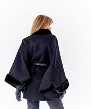 Genuine Scandinavian Mink Fur Double Face Wool Poncho