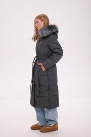 This amazing coat is made from wind-resistant and water-repellent fabric and filled with innovative biological down for warmth. The quilted pattern traps in the heat without adding bulk, while the hood with a detachable fur trim and a host of thoughtful finishing touches ensure comfort and coziness in a variety of weather conditions.