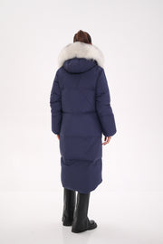 This full-length coat from Alaska Outerwear combines comfort, warmth, and luxurious style. Filled with premium goose down, this coat ensures optimal insulation while maintaining a lightweight feel. The sophisticated design is highlighted by a genuine exclusive Arctic fox fur hood trim, adding a touch of elegance to its practical build.