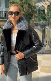 Genuine Silver Fox Fur Down Fill Water-Repellent Coat