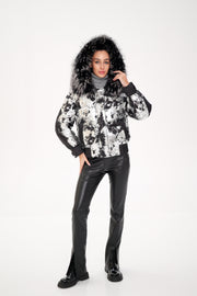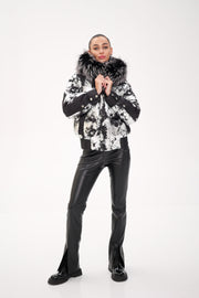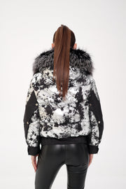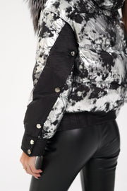 Wrap yourself in the ultimate luxury and winter style with the Glacier Luxe Down Puffer. This eye-catching coat features a bold foil-like metallic print that mimics the dazzling beauty of winter landscapes, ensuring you stand out in any setting. Filled with premium down insulation for exceptional warmth, it’s designed to keep you comfortable in the coldest temperatures. The real Silver fox fur trim adds an opulent touch, giving this jacket an unmatched level of elegance and sophistication.