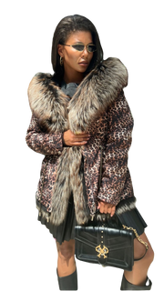 Leopard Genuine Silver Fox Fur Parka with Rabbit Fur Insulation