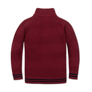 Our plush mock neck sweater in soft organic cotton lends an instantly polished look to your boy for all the activity that cool weather brings. Features a beautiful stripe design, rib trim, and a button placket with faux horn buttons. Pairs perfectly with our collection of organic cotton button downs for a complete look.