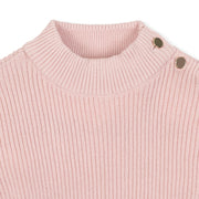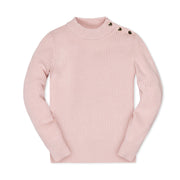 Our refined long sleeve mock neck sweater in soft organic cotton gives your girl the sophisticated style she needs this fall and winter season. Comfortably stretchy in a rib knit, this sweater features a mock neck with gold button detail and rib trim. Pairs perfectly with our assortment of organic cotton skirts, jumpers, and leggings.
