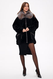 Palermo Genuine Astrakhan Silver Fox Trim Coat
