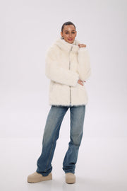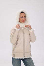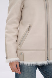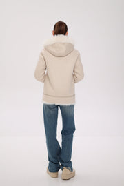 This hip-length reversible jacket combines eco-suede and wool blend, offering two looks in one. The eco-suede provides a sleek soft-to-the-touch finish, while the cozy layer of wool blend adds warmth and texture. With its versatile design, this jacket is perfect for transitioning between casual and sophisticated styles, making it a practical yet luxurious addition to any wardrobe.