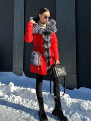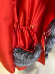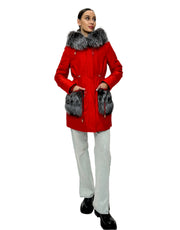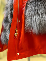 Roma Genuine Silver Fox Fur Rabbit Fur Insulated Parka in Red