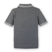 Our short sleeve sweater polo in soft organic cotton combines the polished look of a polo with the coziness of a sweater for the ultimate in comfort and style. Features an allover textured knit, matte button closure at the center front placket, and jersey stitch polo collar with contrast tipping. A sophisticated twist on a classic!