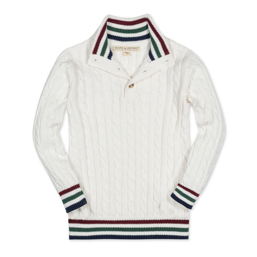 View full detailsStay sharp in our preppy cable knit cricket sweater in plush 100% organic cotton. Beautiful cable knit adorns the entire sweater and is trimmed i...