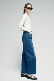 Ankle length, relaxed wide leg