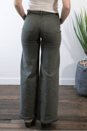 O2 Front Seam Wide Leg Denim Jeans - Olive