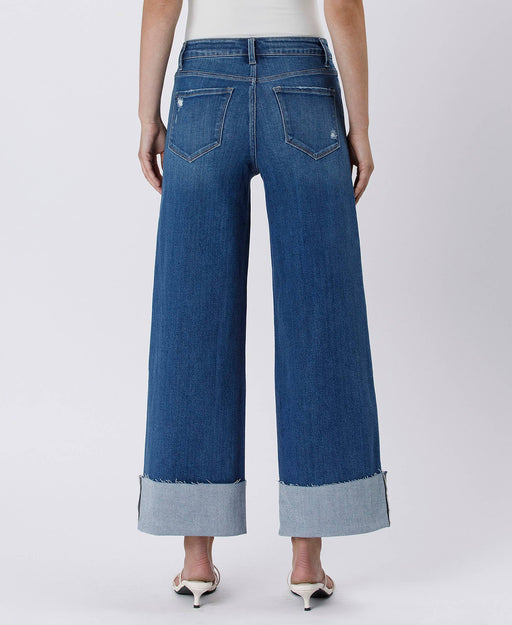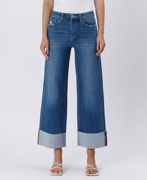 Vervet High Rise Cuffed Ankle Wide Leg Jeans Slightly Distressed Detail, Single Cuff Hem, Ankle Length, Wide Leg Jeans 62% Cotton, 33% Polyester, 3...