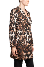 John Meyer Collection Notched Collar Long Sleeve Long Jacket Leopard Print Two Button Pockets Zipper Closure Pants Stretch Crepe Pant Set