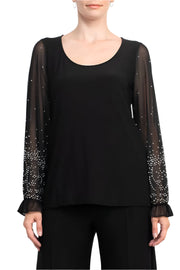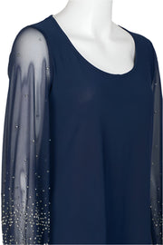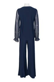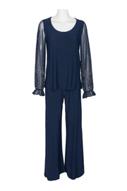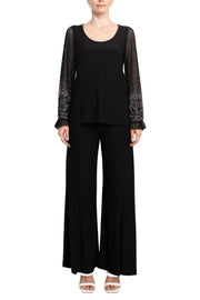 Marina Scoop Neck Embellished Chiffon Long Sleeve Slit Side Top and Elastic Mid Waist Wide Leg Jersey Two Piece Pant Set