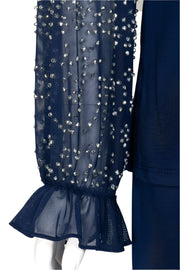 Radiate timeless elegance with the Marina Scoop Neck Two-Piece Pant Set, designed to elevate your look for weddings, formal events, and sophisticated celebrations. This stunning ensemble features a beautifully embellished chiffon top with sheer long sleeves and delicate side slits, paired with soft, fluid wide-leg jersey pants that offer a graceful drape and all-day comfort.