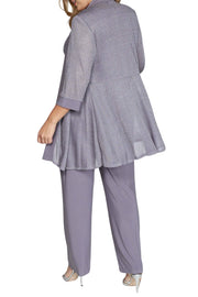 R&M Richards Sleeveless Scoop Neckline Top Dress and Loose Pants with Matching Quarter Sleeves Jacket Three-Piece Set