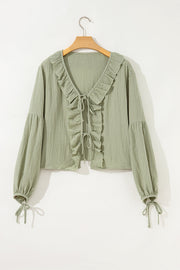 Natalia Bow Tie Front Ruffle Trim Long Sleeve Gauze Blouse