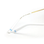 These round frames will compliment your look if you like to mix chic and retro. The handcrafted stainless steel gold frame and white opaque acetate hardware create a classic, elegant look for the artist in you.