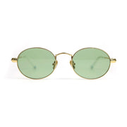 These fun, chic sunglasses will draw attention and accentuate your best features. With light green polarized lenses, gold stainless steel frame w/ white opaque acetate, the Meadow is the classic rounded sunglasses you've been looking for.