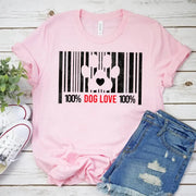 100% Dog Love Barcode With Paw Pet Lover Tee