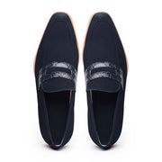 11-020-NVY MEO 3 Sueded Goatskin Penny Loafer, Navy
