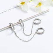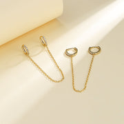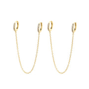 14k Gold and Sterling Silver Double Huggie Chain Earrings with Crystals