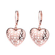 For a unique and beautiful gift, this filigree heart of 14K gold and sterling silver is made by hand to highlight all your best virtues. Our 14K Gold Filigree Heart Earring will stand out even among your other jewelry collection. Wear it alone or under a line of other earrings to add a pop of color. The 14K Rose Gold coating and sterling silver metal makes this piece sparkle, while the ingenious design adds an element of elegance and grace.
