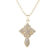 14K Gold And Sterling Silver Studded Cross Pendant Necklace