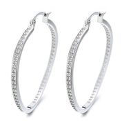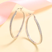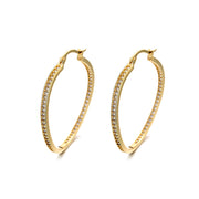 The earrings are embellished with shimmering crystals, which add a touch of sparkle and elegance to the design. The crystals are carefully placed within the twisted hoop, catching the light beautifully and adding a dazzling effect to the earrings.