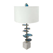 15x29.5 Blue and White Agate Slice Table Lamp with Marble Base