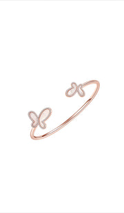 18K Rose Gold & CZ Encrusted Mother Of Pearl Butterfly Women's Bangel Bracelet Jewelry