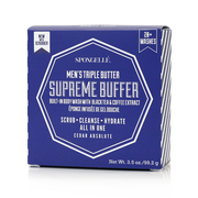 Introducing our enhanced Men's Supreme Buffer, now featuring an innovative dual-sided black scrubber for an invigorating and effective exfoliation experience. Treat his skin to our Men’s Triple Butter Supreme Buffer in invigorating Cedar Absolute with fresh lemon, aromatic myrrh, and smoky oud wood. This all-in-one men’s cleansing treatment contains moisturizing cocoa butter, nourishing shea butter, and vitamin A enriched mango butter for a stimulating clean, deep exfoliation, amplified hydration, and increased circulation for up to 20+ washes.