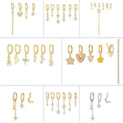 Elevate your style with the 6 Pieces Crystal Cascade Drops Earring Set! Crafted in 18k gold finish with S925 silver needles, this set includes 6 individual earrings—small hoops with dangling geometric charms featuring round and rectangular zirconia stones in cascading drop designs—all adorned with dazzling zirconia stones. The S925 silver needle is perfect for sensitive ears, ensuring hypoallergenic comfort.