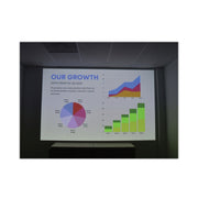 The AAXA P6X combines the latest Osram LEDs, Texas Instrument's DLP imager technology, and a massive 54-watt lithium ion battery to produce a projector capable of delivering 1,000 LED lumens on battery power. The AAXA P6X can deliver amazing 160" images (in dark areas) on battery power with a slight brightness bump when plugged in (1,100 lumens). To achieve this level of power efficiency the P6X LED Projector moves away from XPR technology that requires power-hungry actuators and FPGAs and inefficient quad-LED pumping and instead focuses on system power efficiency. The end result is a high definition (HD WXGA) projector that delivers 1,000 LED lumens in battery mode and four hours of battery life in eco mode. The P6X is a modern business projector that fits in your backpack, charges your smart device, and delivers conference capable projection on just battery power. Shorten meeting times without fumbling for cords or cables—project a presentation immediately without needing to plug in.
