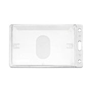 Clear, rigid, molded plastic delivers durability and style. The small compact design keeps keeps your ID card/badge secure. Holds two standard thickness ID or credit cards and features a thumb notch for easy card removal. Frosted holder allows your ID card/badge to be in continual view. Slot and pin holes accommodate lanyards, straps and chains.