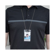This lightweight 36" long nickel-plated beaded chain is designed with simplicity and function in mind. Strong connector to ensure constant closure. No frills or fuss, the chain easily attaches to badges and ID cards and the chain rests comfortably on your neck.