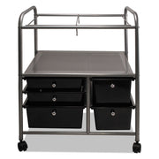 Store legal files and letters without sacrificing portability. Four swiveling casters (two locking) allow for enhanced mobility and ease-of-access. Five drawers in three different sizes create ample storage space for a variety of items. Cart comes in black/chrome combination for a stylish addition to any office. Drawer Dimensions—Large: 5.25"H x 11.25"W x 15.25"D; Medium: 5.25"H x 7.75"W x 15.25"D; Small: 2.75"H x 11.25"W x 15.25"D.