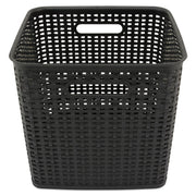 The perfect storage solution and balance of function and fashion, the plastic weave bin declutters any home or office environment. Constructed of sturdy black plastic, this bin can store pretty much anything. The classic black color will blend into any room.