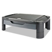 Clever all-in-one design can be used as a utility cart, monitor stand, and/or printer cart. Includes 3 shelves, stacking columns, drawer and casters which can be configured any way you need such as a 2 or 3-tier cart and/or a single or double-shelf stand. Any configuration accepts the included storage drawer and casters. Simple no-tools assembly can be setup fast and reconfigured easily. Unique stacking columns can be setup for minimum or maximum height. Accessory tray on each shelf for extra storage, and slot to hold phones, tablets, or your pen.
