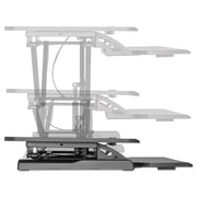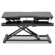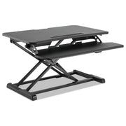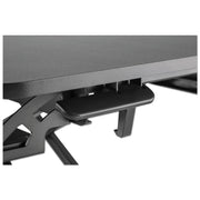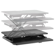 These lifting workstations turn any desk into an ergonomic sit-stand station. Raise and lower with ease. Two-tiered worksurface and keyboard/mouse platform for better ergonomics. Platform's rear-notched design accommodates most monitor arms. Neatly route cables behind display. Designed specifically for use with the Alera® Monitor Arms. Smart space-saving design stays within your desk space and raises vertically within the same plane. No having to step back and out when in the raised position. Reinforced base for stability at any height. Will not flip or height-drop even when leaning on the workstation.