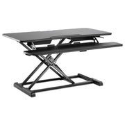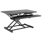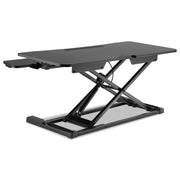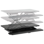 These lifting workstations turn any desk into an ergonomic sit-stand station. Raise and lower with ease. Two-tiered worksurface and keyboard/mouse platform for better ergonomics. Platform's rear-notched design accommodates most monitor arms. Neatly route cables behind display. Designed specifically for use with the Alera® Monitor Arms. Smart space-saving design stays within your desk space and raises vertically within the same plane. No having to step back and out when in the raised position. Reinforced base for stability at any height. Will not flip or height-drop even when leaning on the workstation.