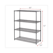 Alera All-Purpose Wire Shelving Starter Kit, Four-Shelf, 60w x 24d x 72h, Black Anthracite Plus