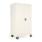 This mobile storage cabinet is fully assembled and ready for immediate use. Built with commercial grade steel and reinforced doors for long-term performance at an attractive price. Recessed handle provides easy access without handles obstructing narrow aisle ways. Five openings and 200 lb. capacity per shelf. Storage cabinet is electrostatically painted with a tough, long lasting powder finish to ensure years of lasting beauty. Shelves adjust in 2" increments without tools. Raised base keeps contents out of harm's way from cleaning liquids. Heavy-duty caster base has four 5" casters, two locking. Three adjustable shelves, one fixed shelf. Cord management slots.