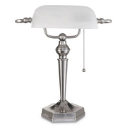 Classic design adds sophistication and elegance to any office, study, or home den. Refined glass shade rotates to pilot light direction. Classic pull chain for easy on/off power. 13W CFL bulb is included.